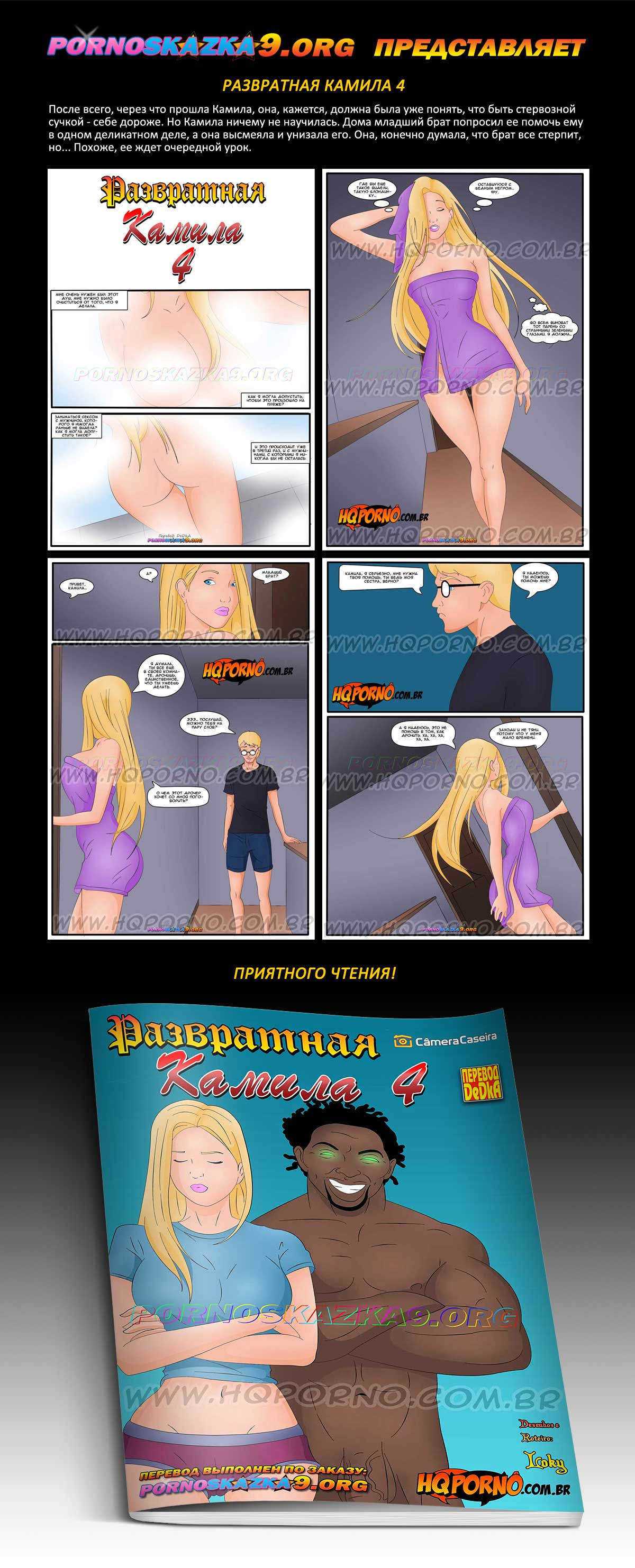 Порно комикс Развратная Камила. Часть 4. После всего, через что прошла Камила, она, кажется, должна была уже понять, что быть стервозной сучкой — себе дороже. Но Камила ничему не научилась. Дома младший брат попросил ее помочь ему в одном деликатном деле, а она высмеяла и унизала его. Она, конечно думала, что брат все стерпит, но… Похоже, ее ждет очередной урок.